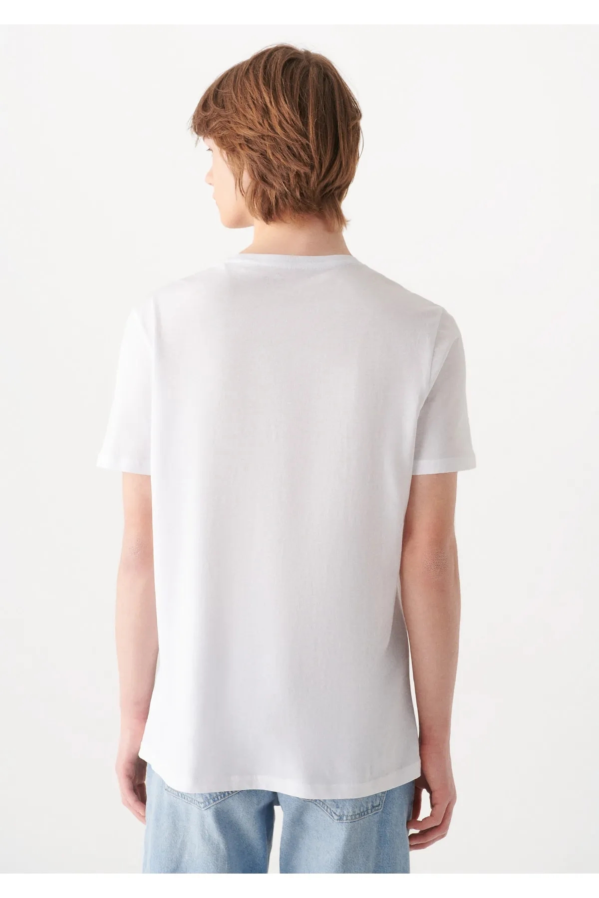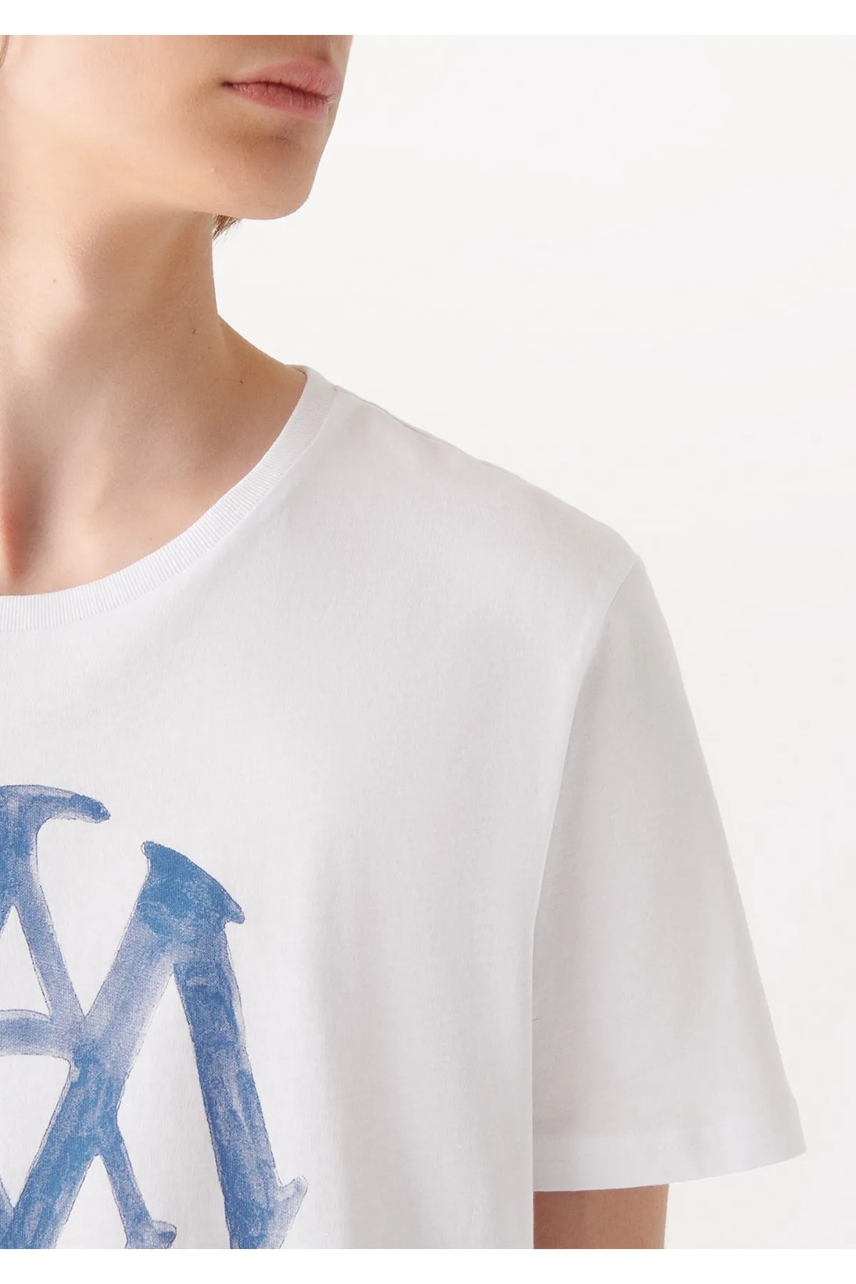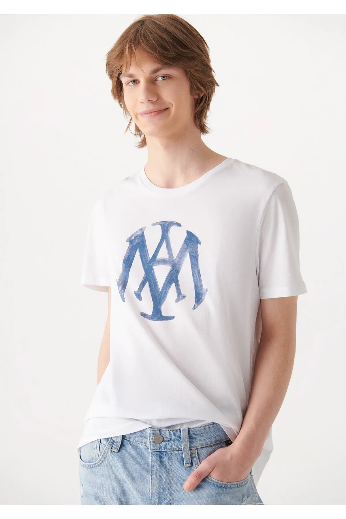 Mavi Logo Baskılı Beyaz Loose Fit Tişört