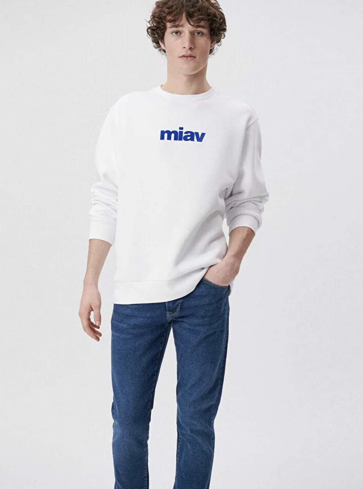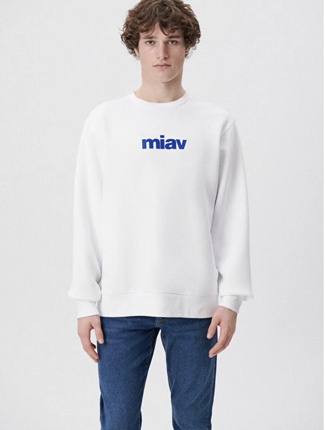 MİAV BASKILI LOOSE FİT BEYAZ SWEATSHİRT