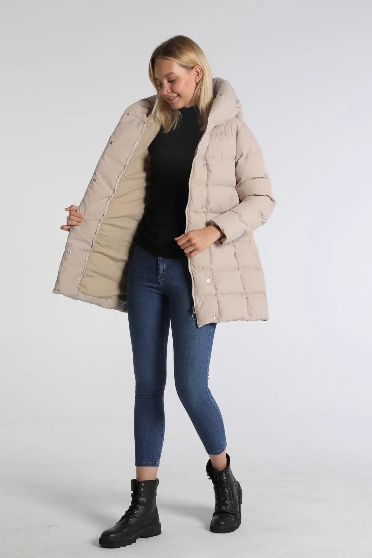 REGULAR FİT SIKI DOLUM LİKRA KUMAŞ KAPÜŞONLU MONT