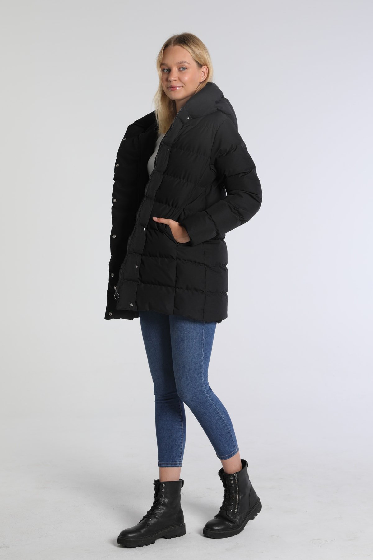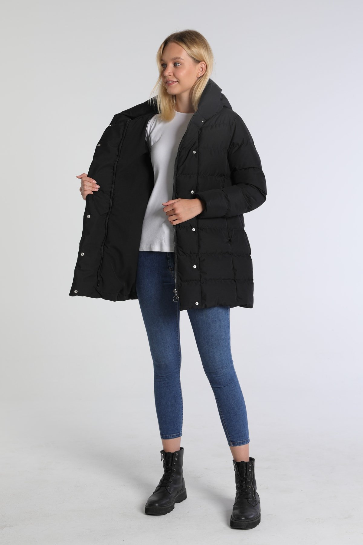 Suni Kürk Detaylı Siyah Şişme Loose Fit Mont