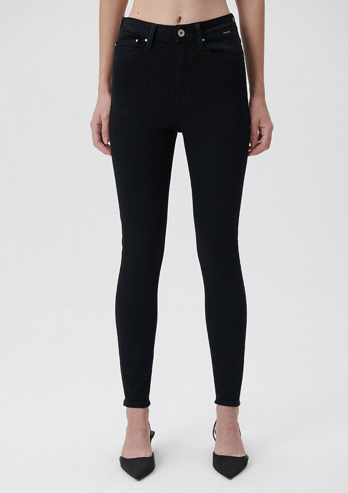 Cindy Yüksek Bel Daralan Paça Siyah Mom Jeans Pantolon