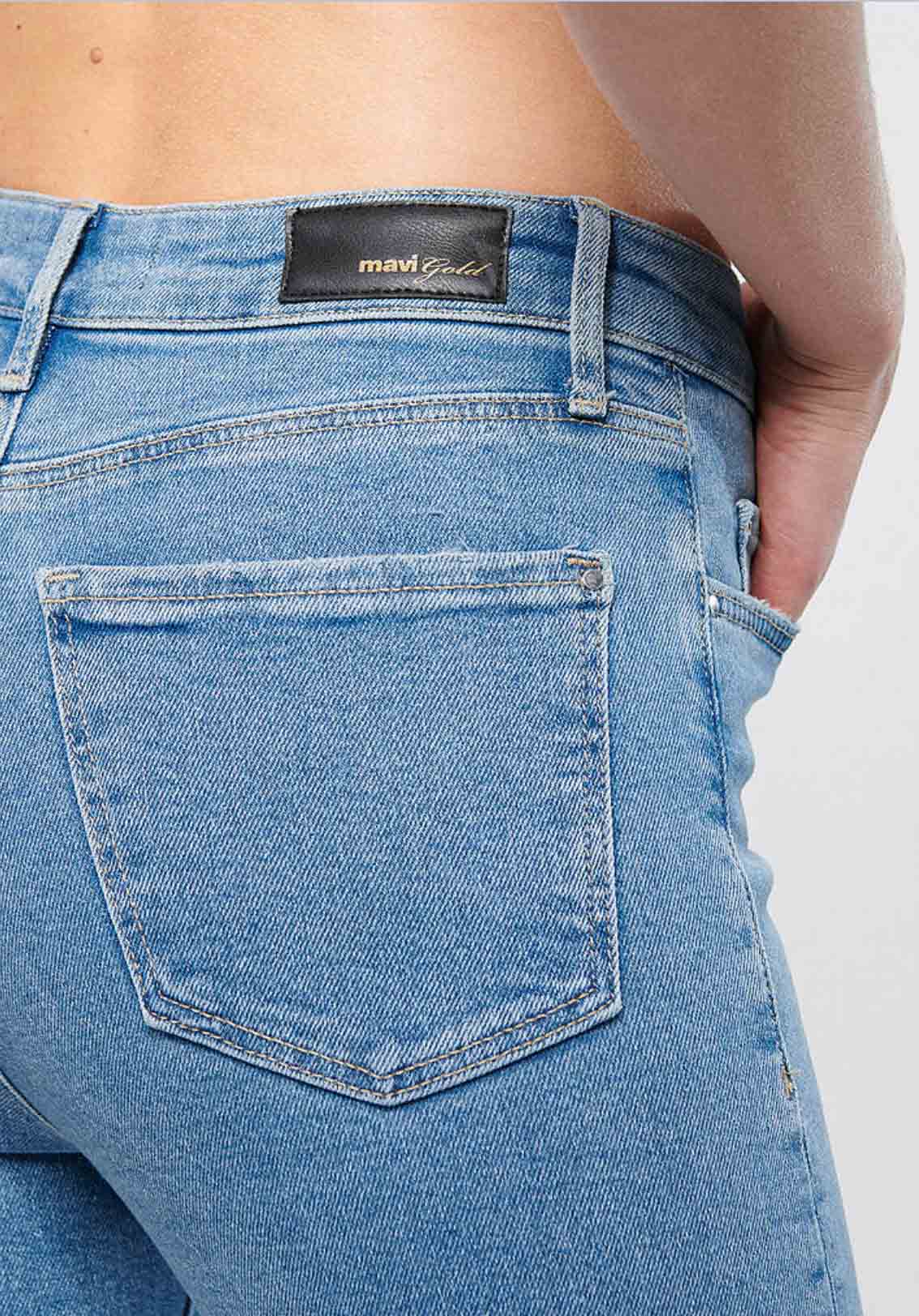 SERENAY PUSLU MAVİ GOLD SHAPE JEAN PANTOLON