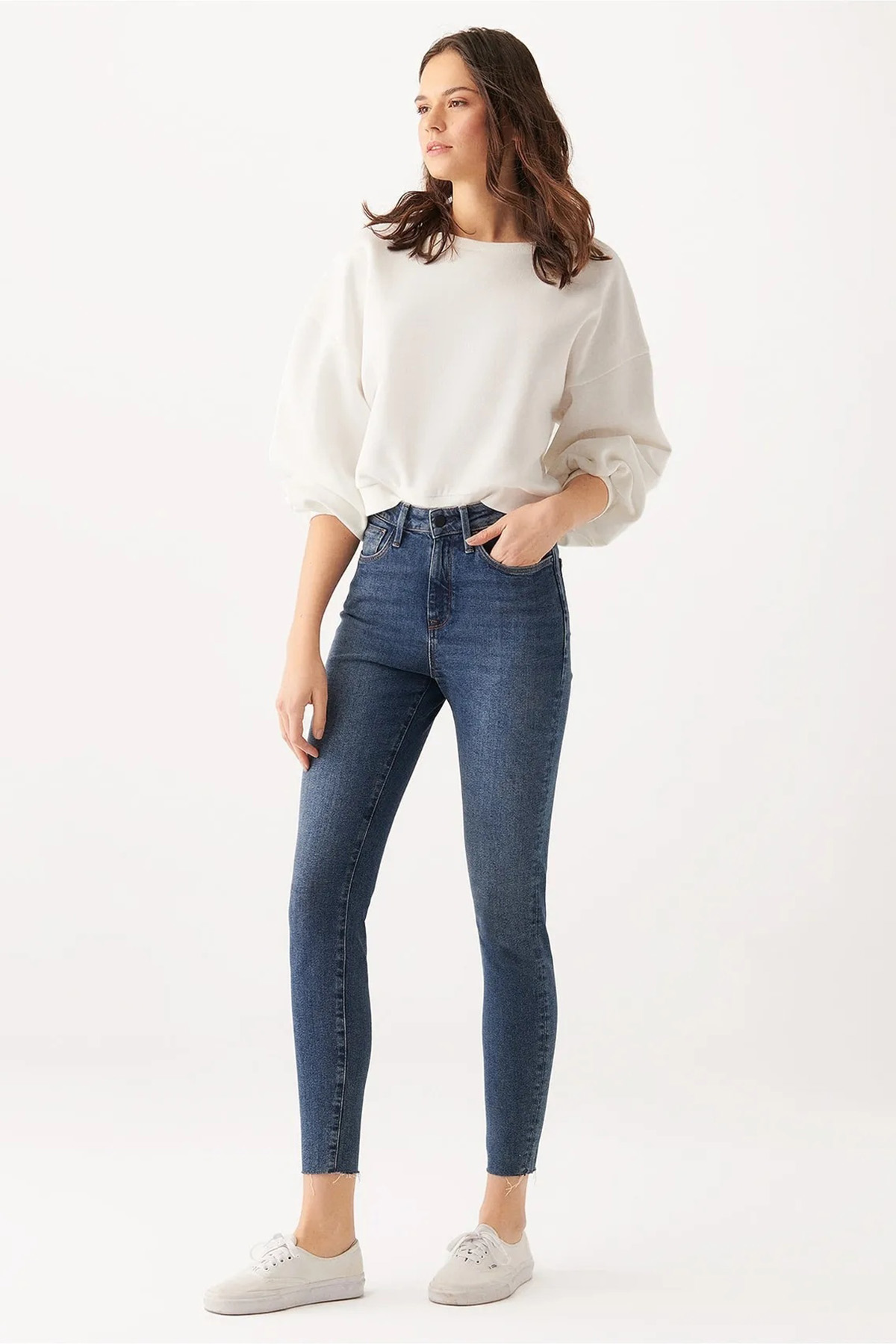 SERENAY SÜPER SKİNNY YÜKSEK BEL DAR PAÇA LACİVERT JEAN PANTOLON
