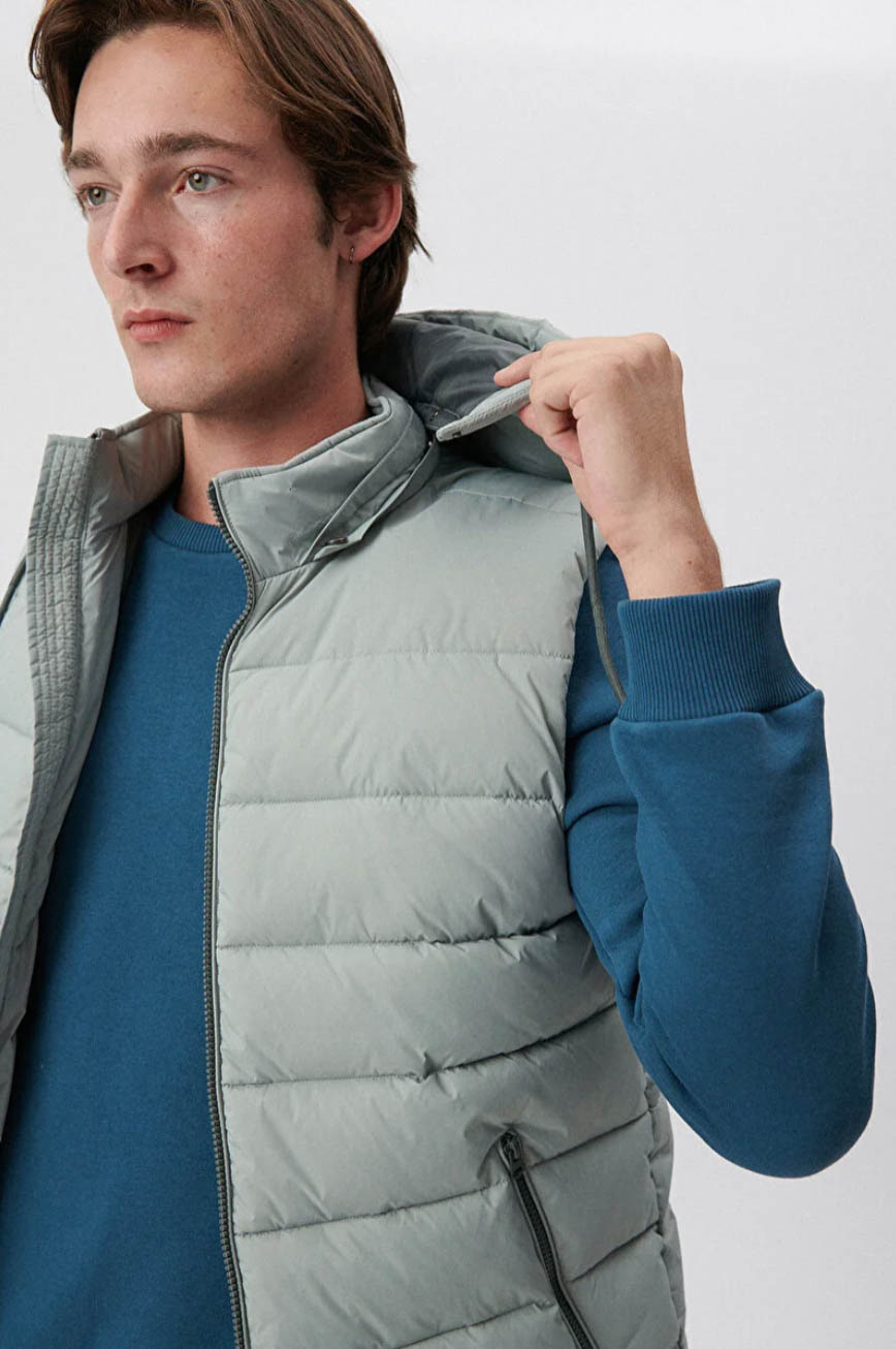 Kapüşonlu Açık Gri Yelek