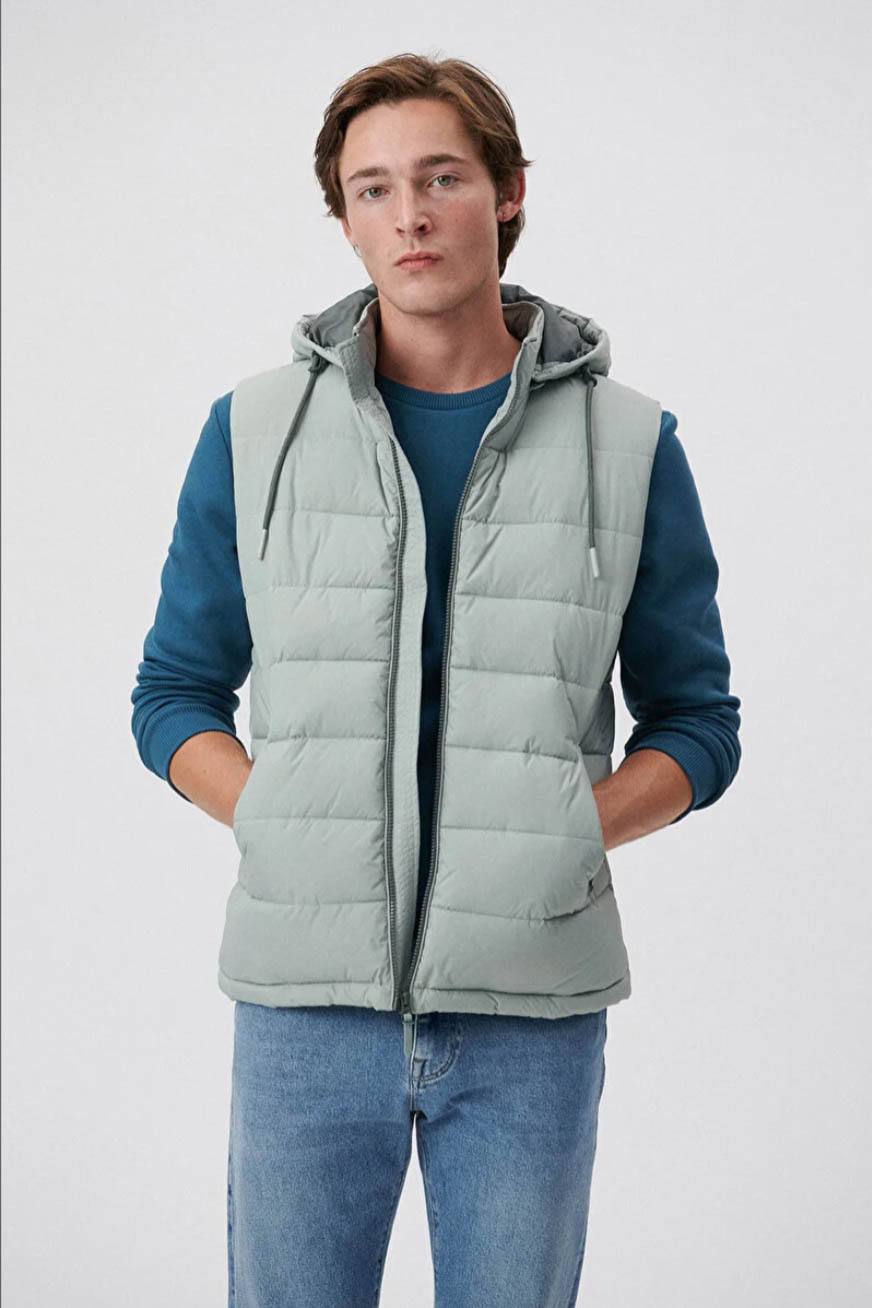 SİS YEŞİL KAPÜŞONLU REGÜLER KESİM ŞİŞME YELEK