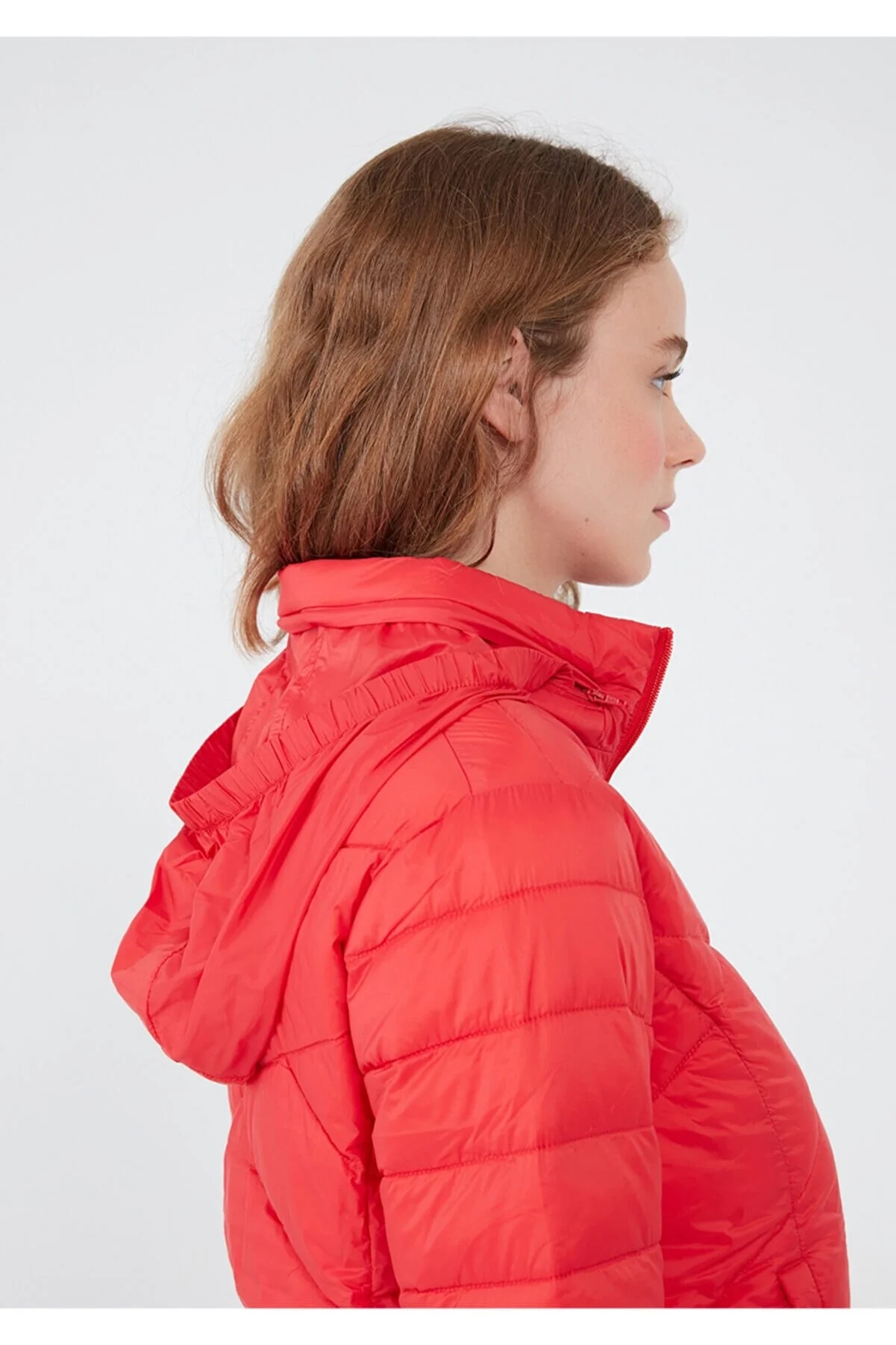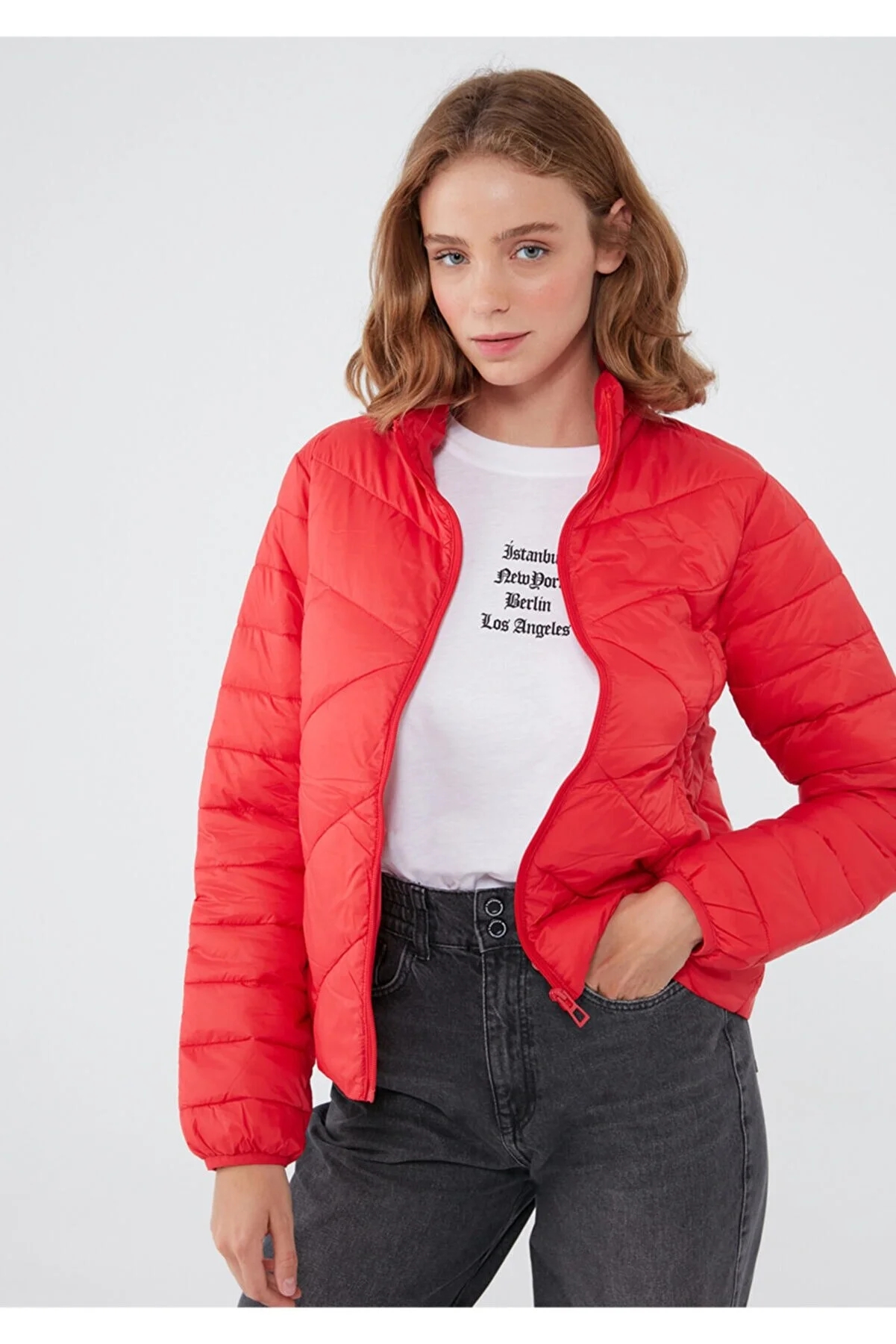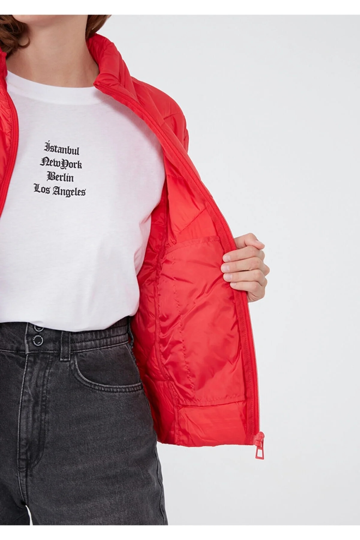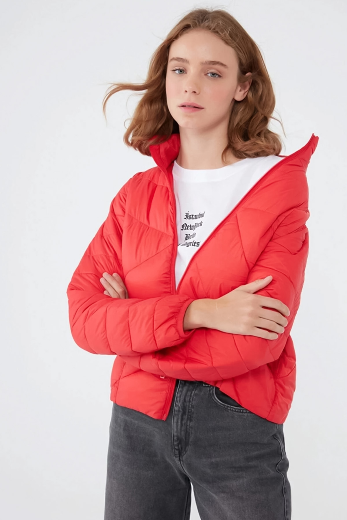 ŞİŞME DİK YAKALI SLİMFİT KIRMIZI MONT