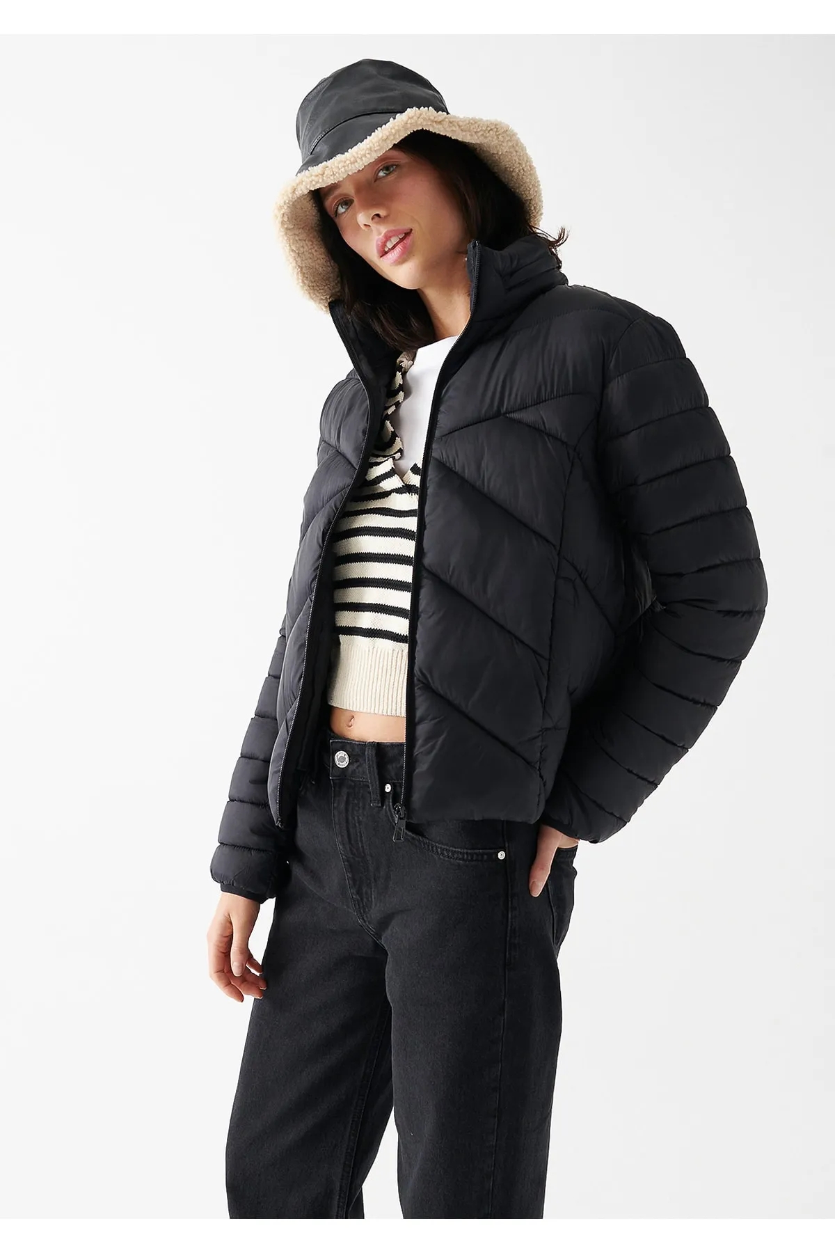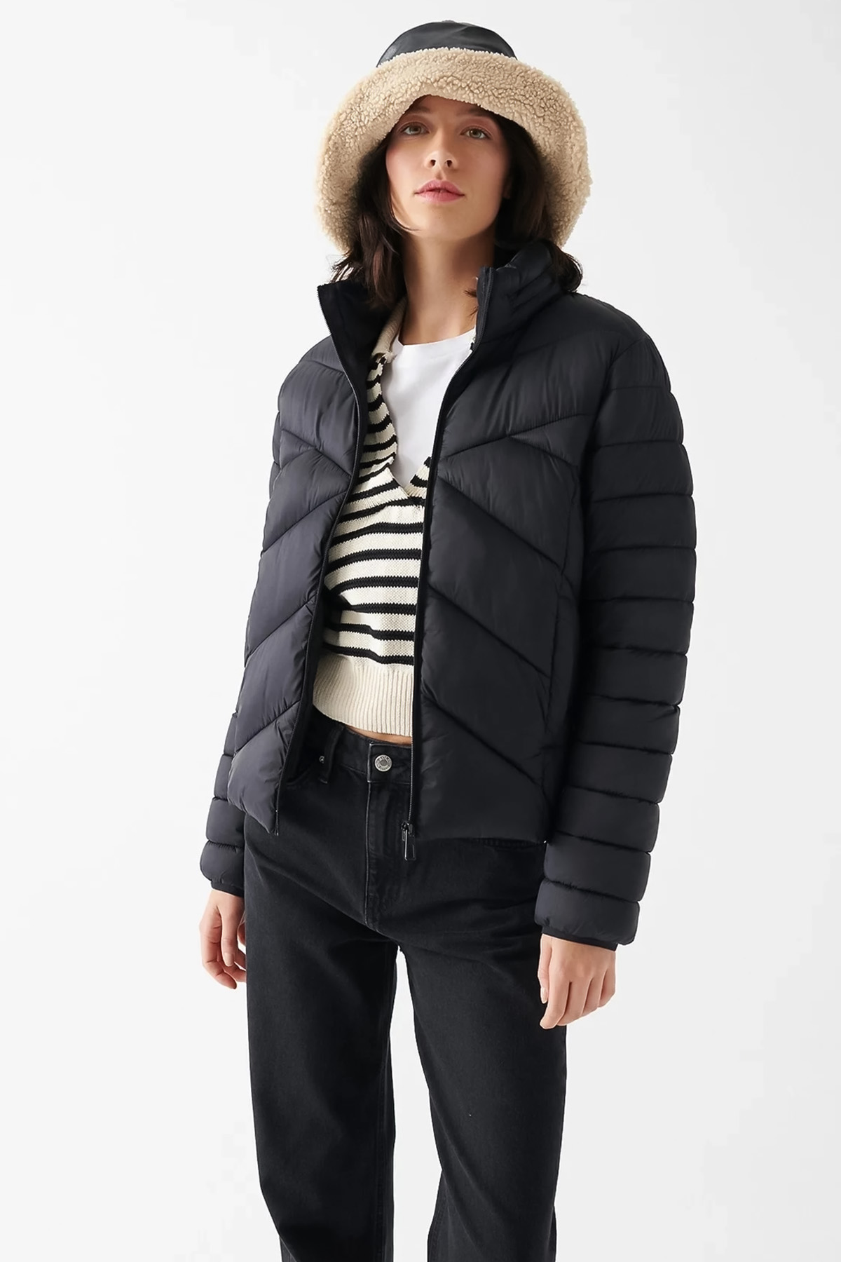 ŞİŞME DİK YAKALI SLİMFİT SİYAH MONT