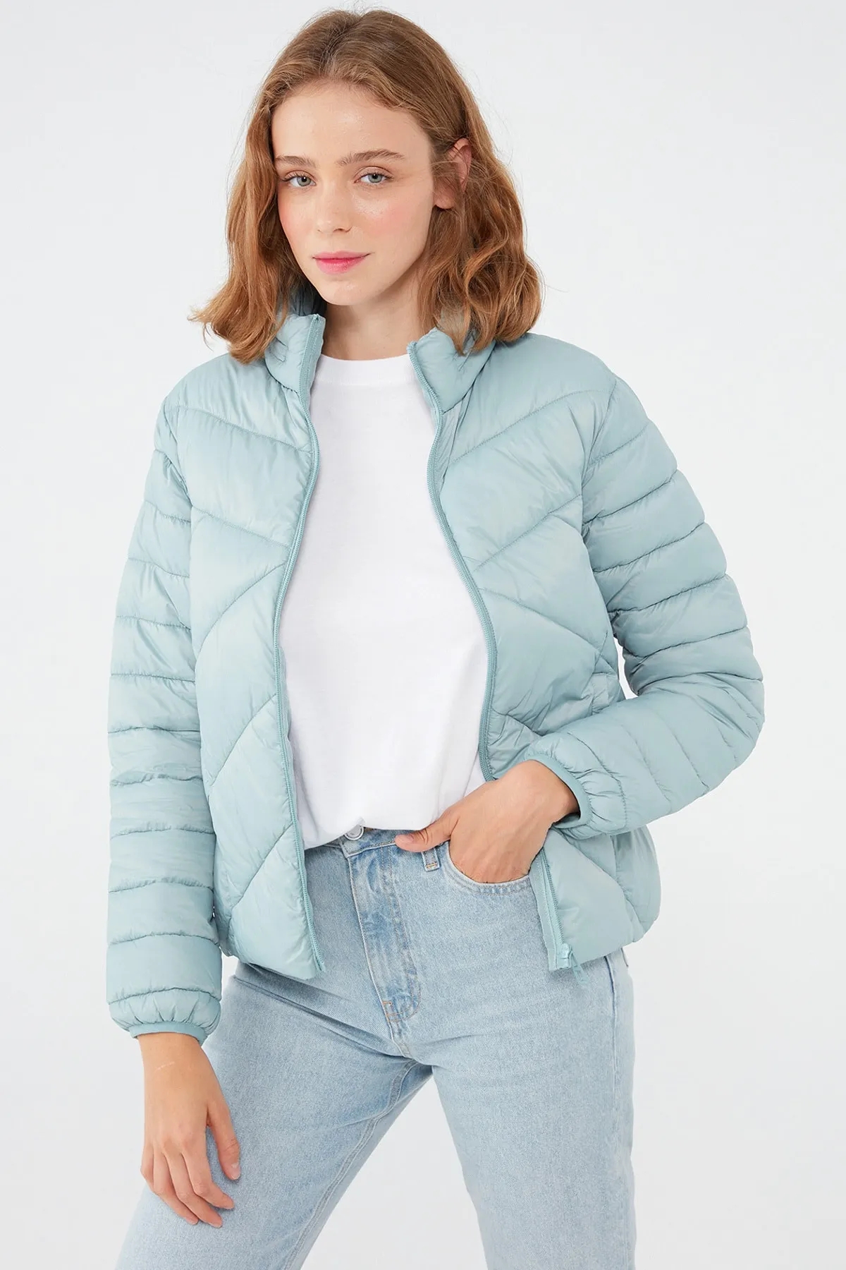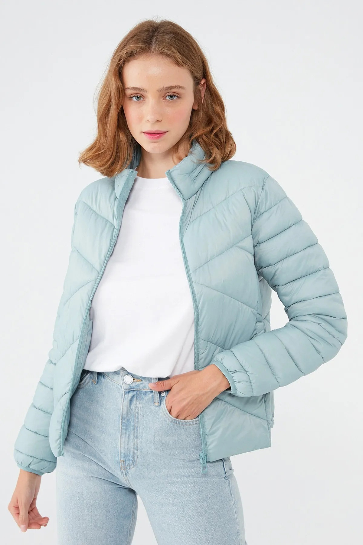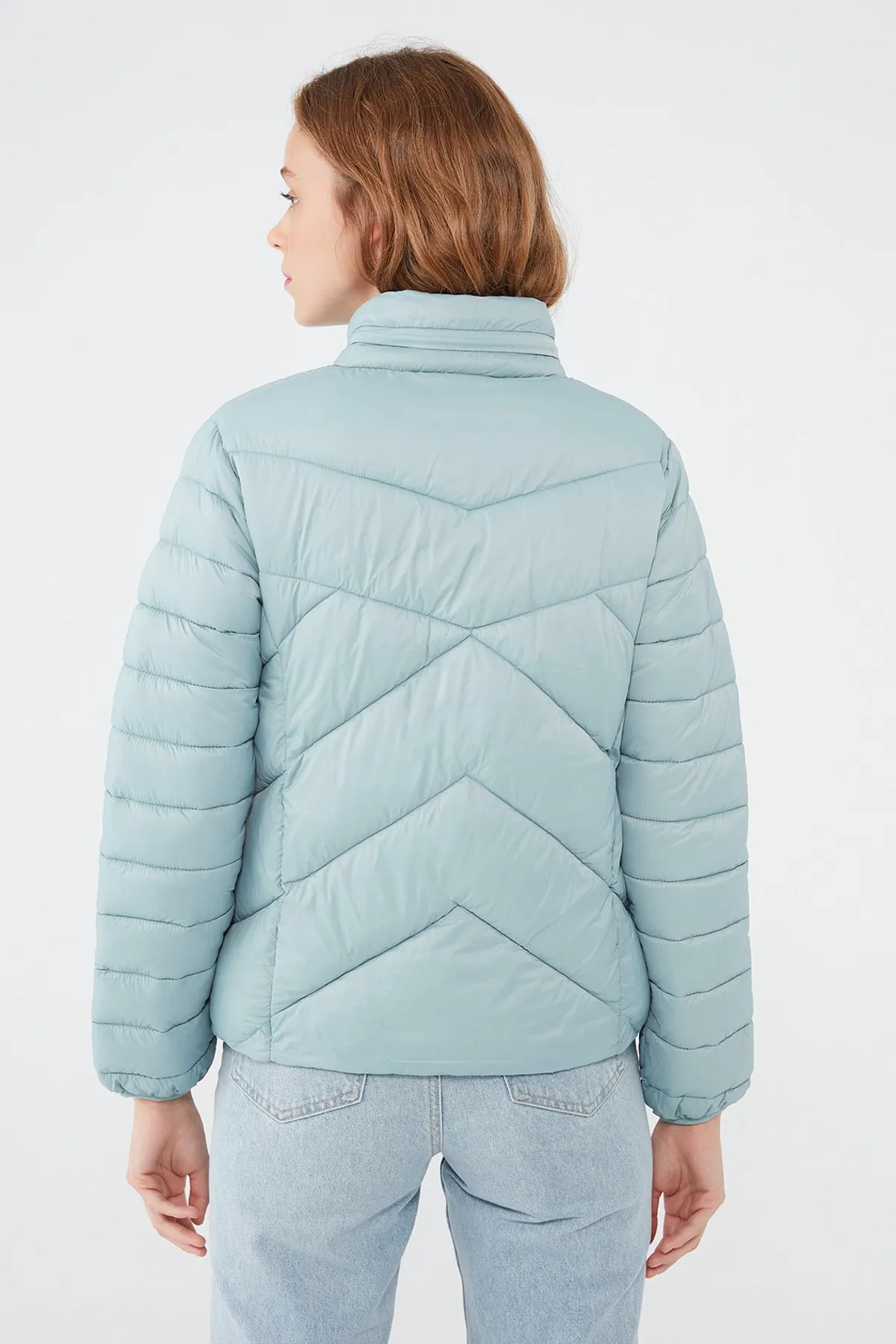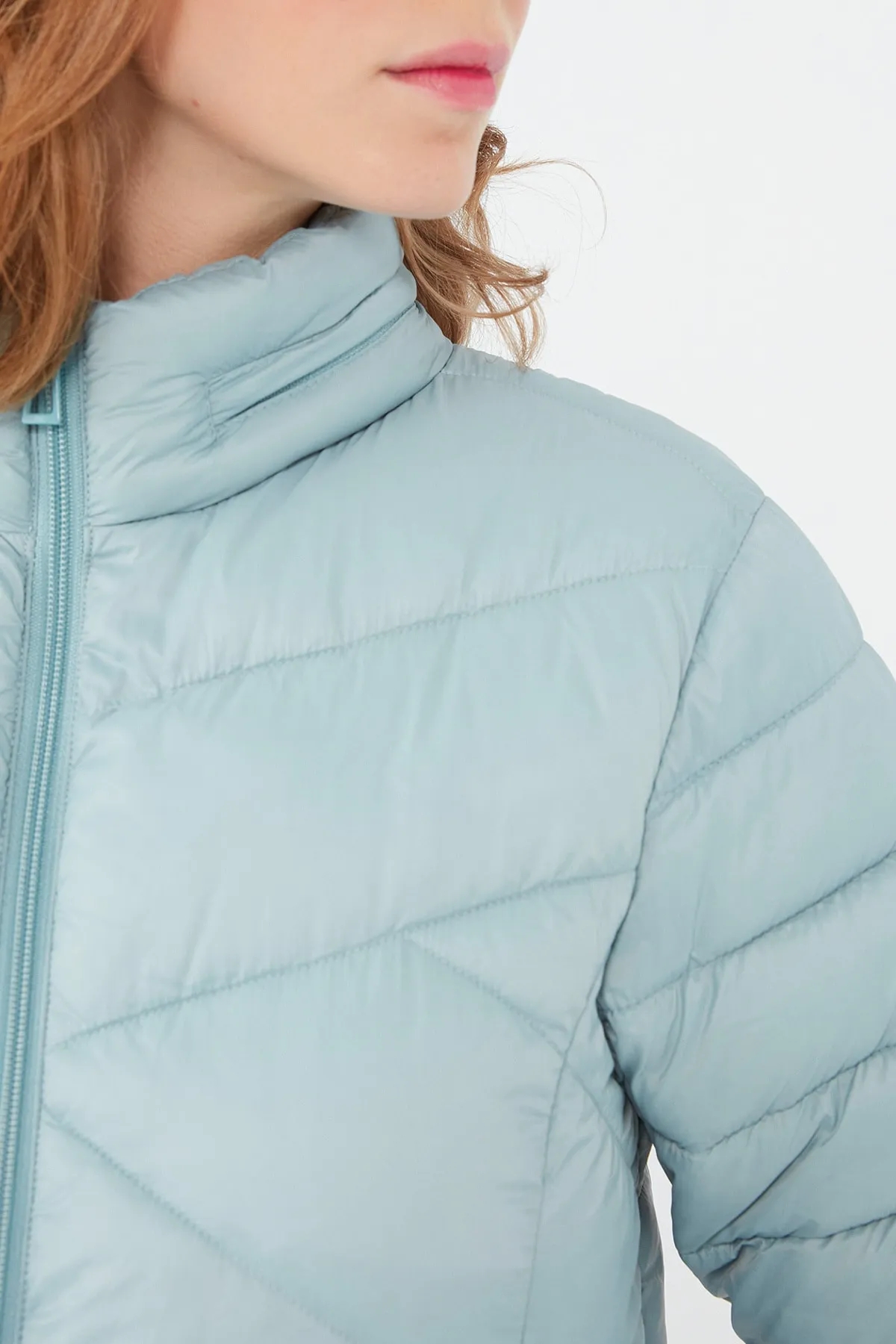 ŞİŞME DİK YAKALI SLİMFİT SOLUK MAVİ MONT