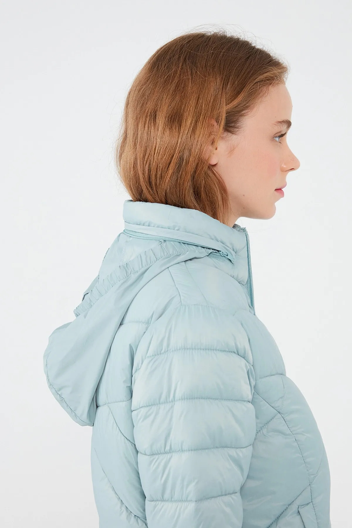Kapüşonlu Mint Yeşili Şişme Mont