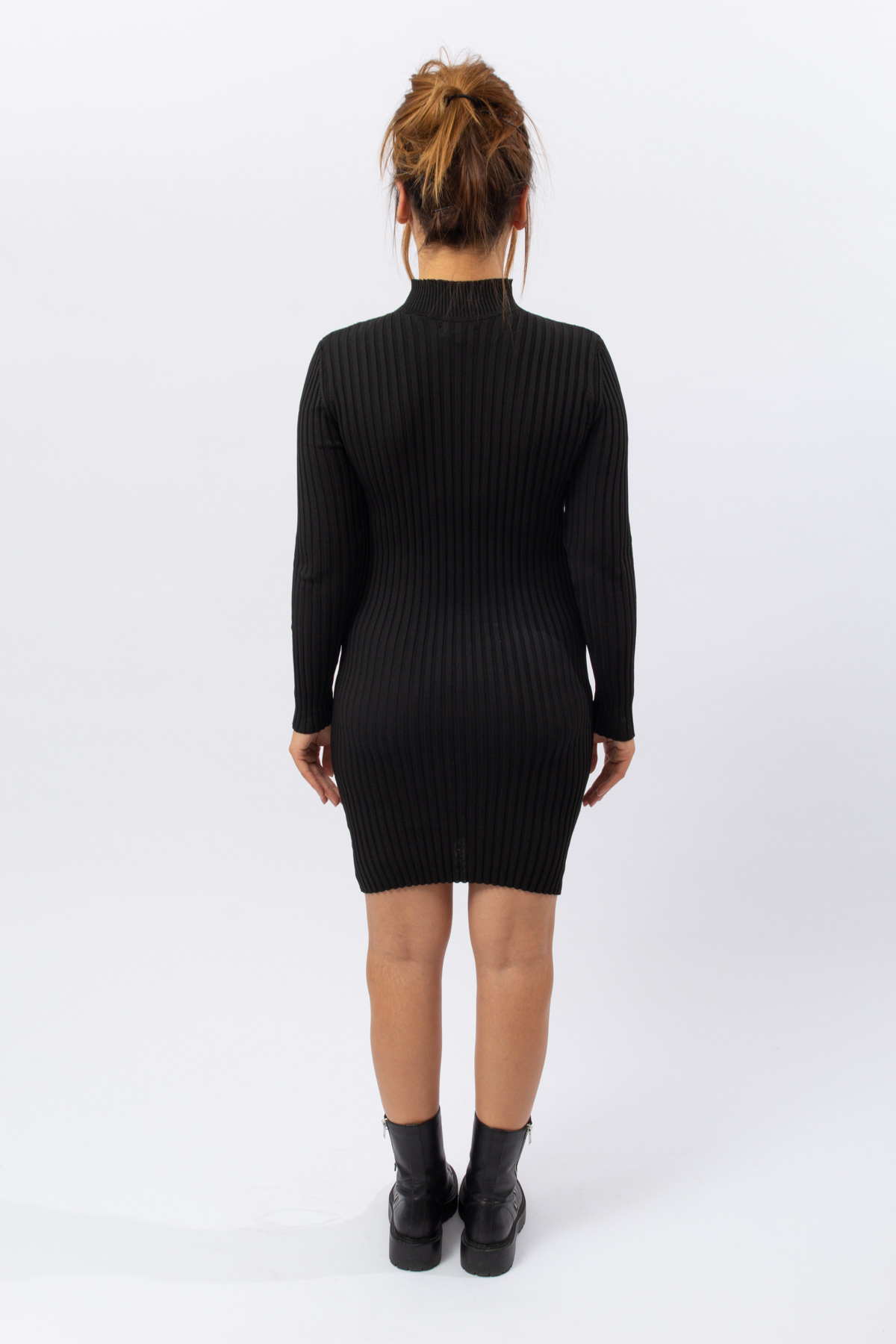 SİYAH RENK BALIKÇI YAKA TRİKO ELBİSE