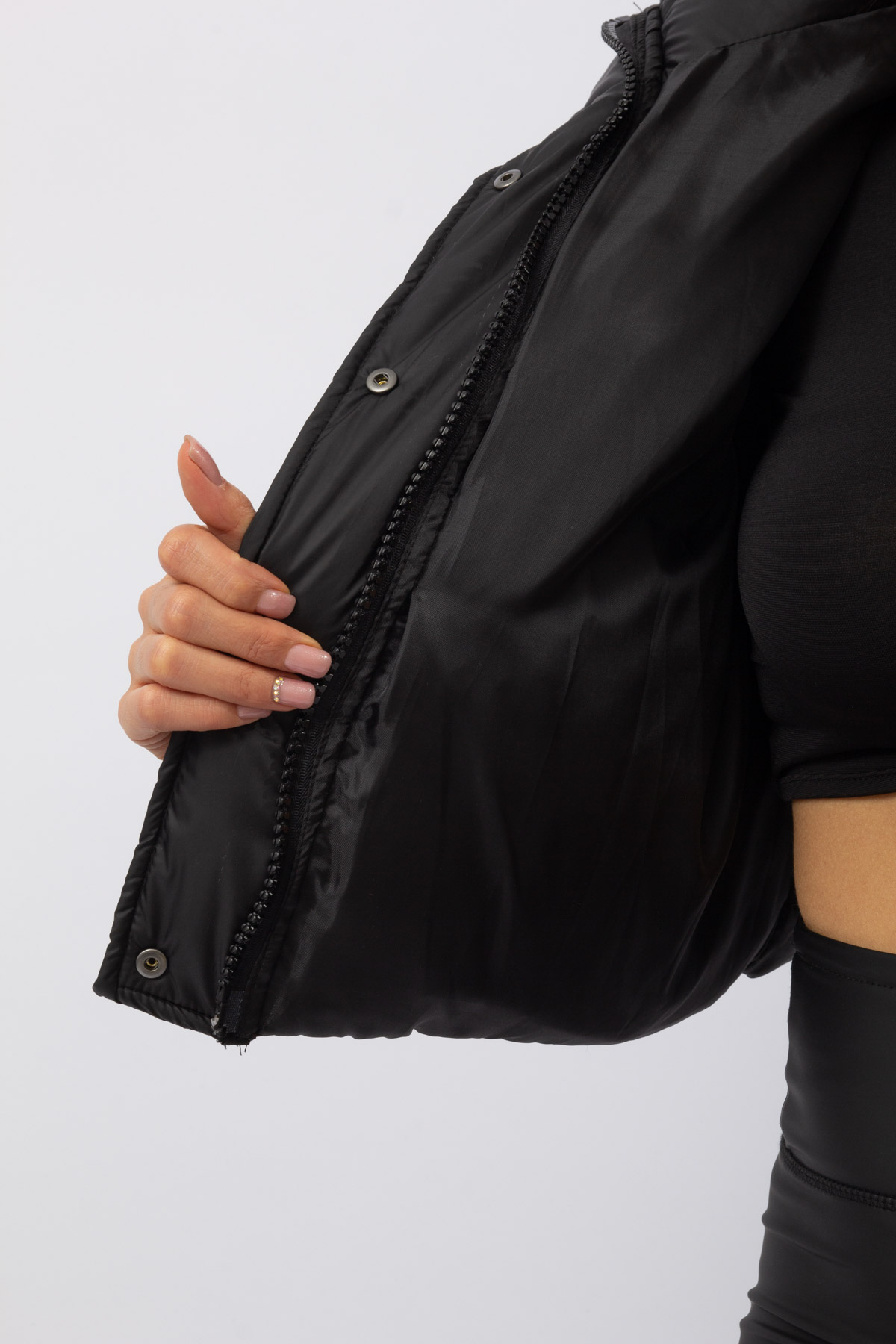 Kapüşonlu Siyah Şişme Mont