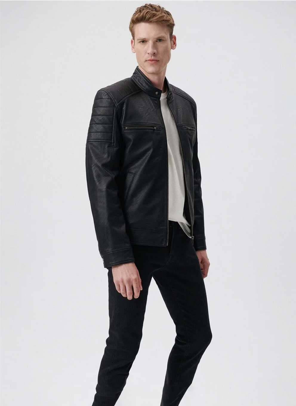 SİYAH SUNİ DERİ İÇİ DOLGULU CEKET