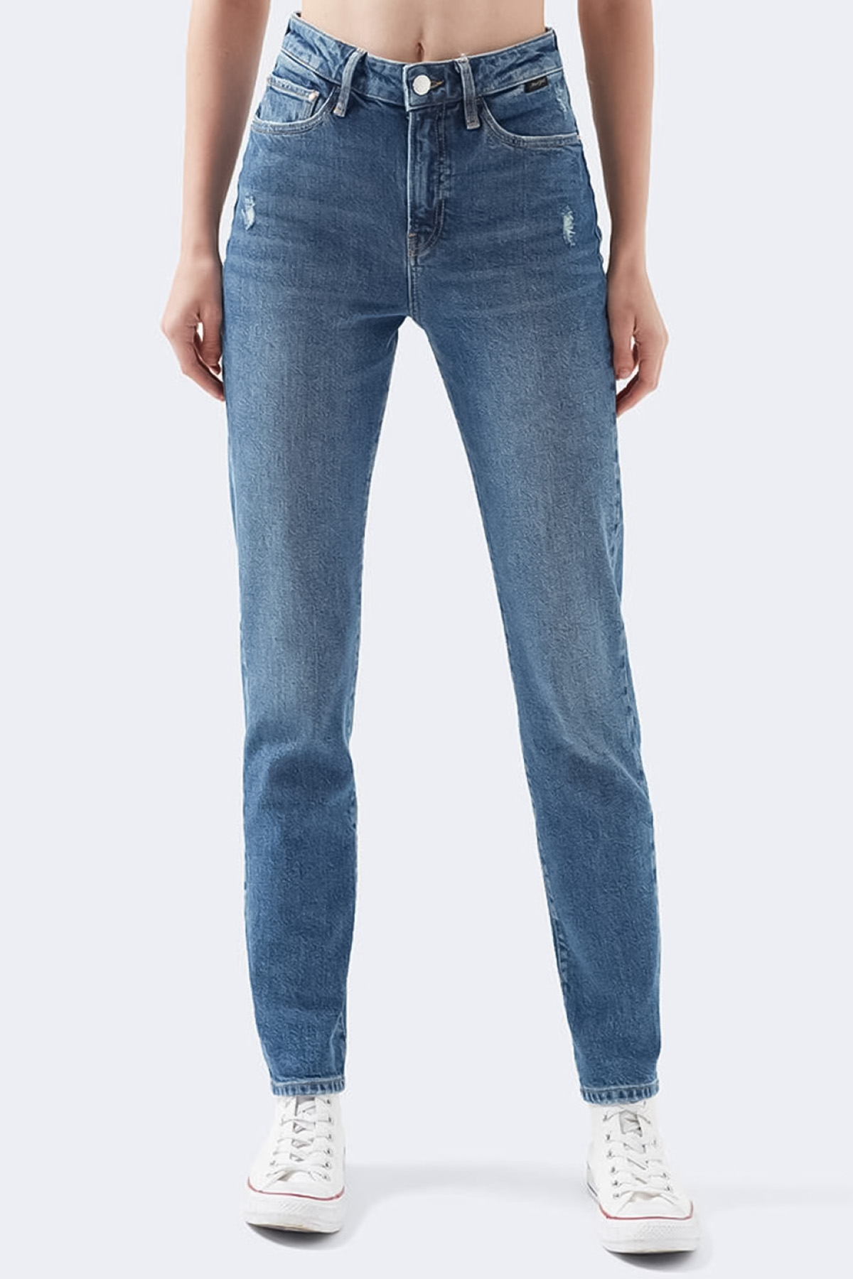 Cindy Yüksek Bel Daralan Paça Lacivert Mom Jeans Pantolon