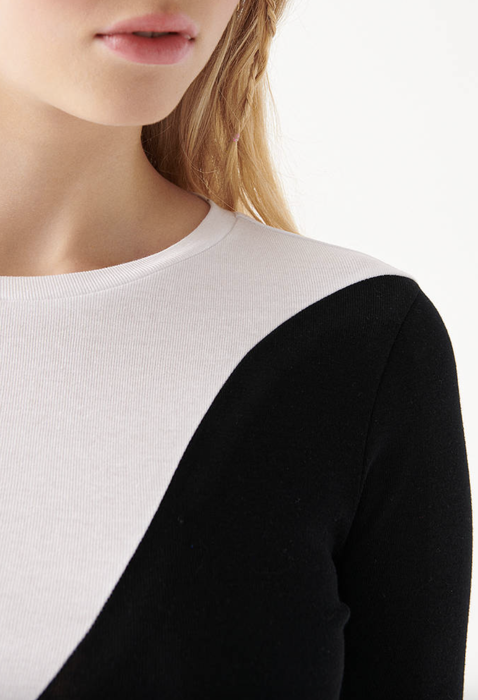 Siyah Kırık Beyaz Renk Yarım Balıkçı Likralı Bluz