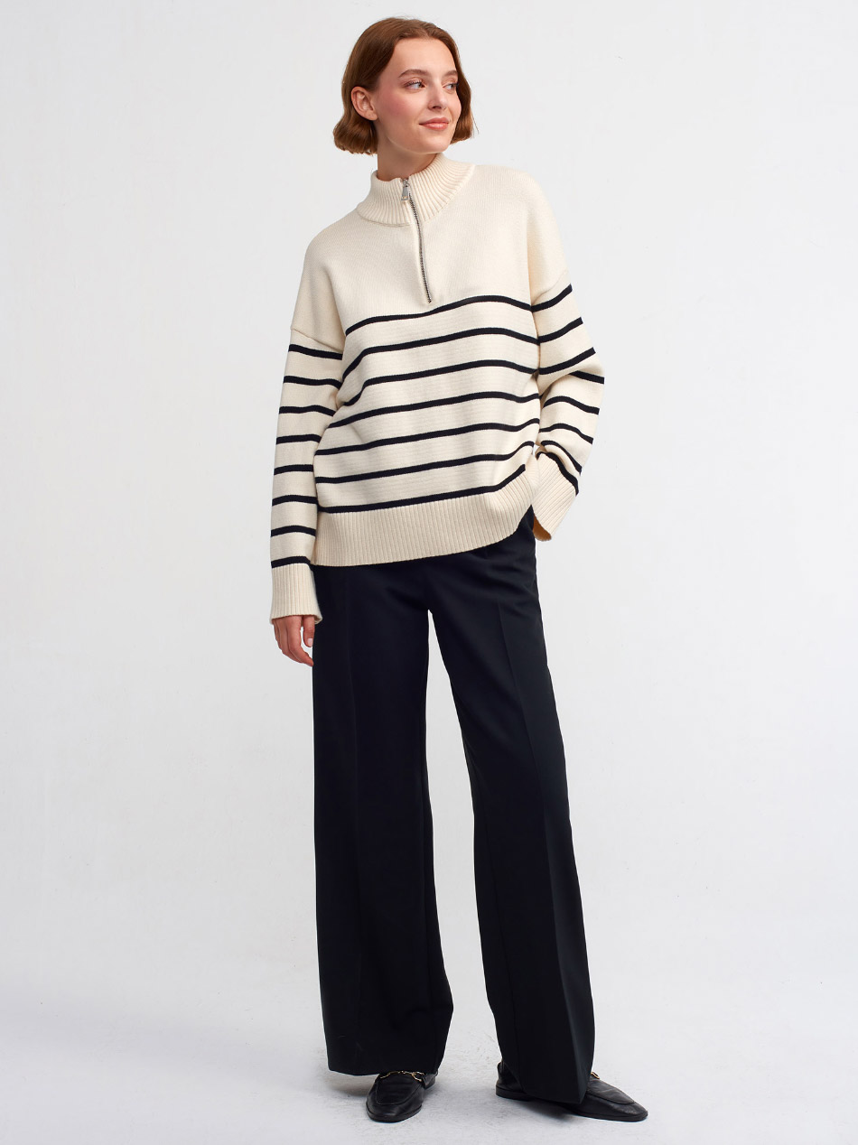 Yarım Balıkçı Fermuarlı Çizgili Kazak