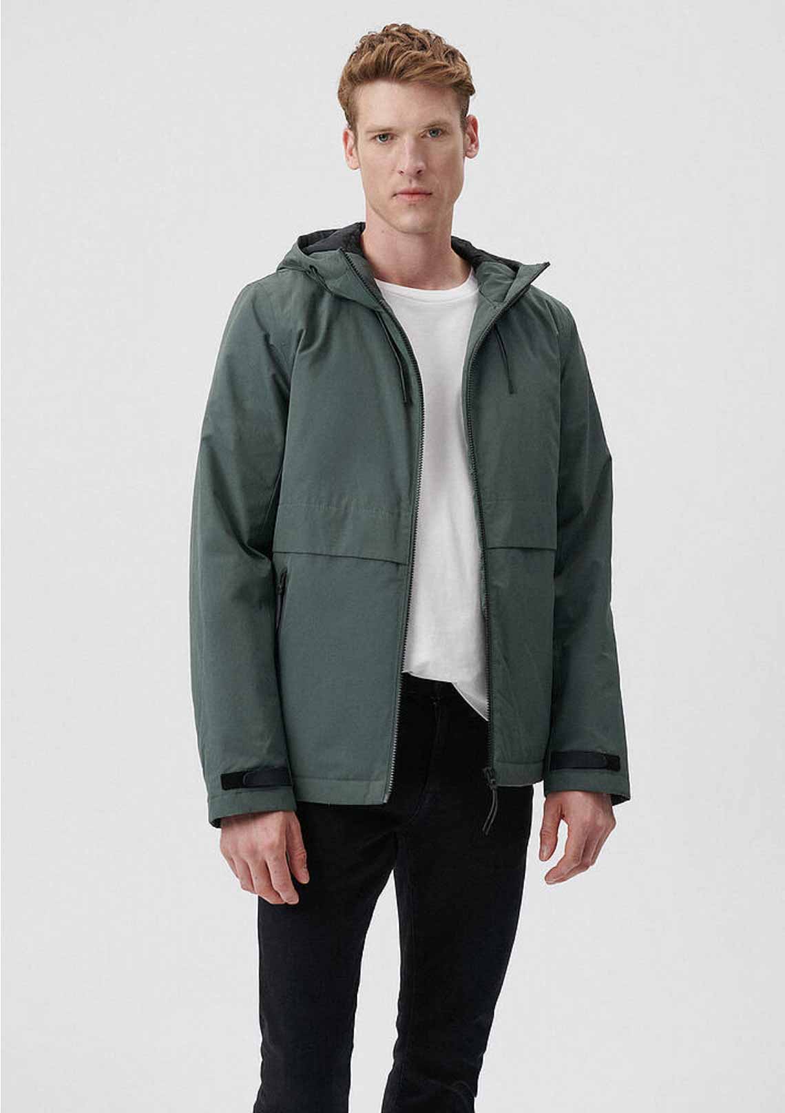 YOSUN YEŞİLİ KAPÜŞONLU SLİM DÜZ KESİM MONT